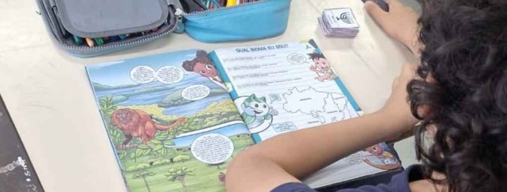 Na Escola Coelho Neto, alunos do 2º e 3º ano do ensino fundamental participaram do Programa “Nosso Planeta, Nossa Casa”, que abordou temas como cuidado com o meio ambiente, reciclagem, gestão de resíduos e sustentabilidade de forma lúdica e educativa.
